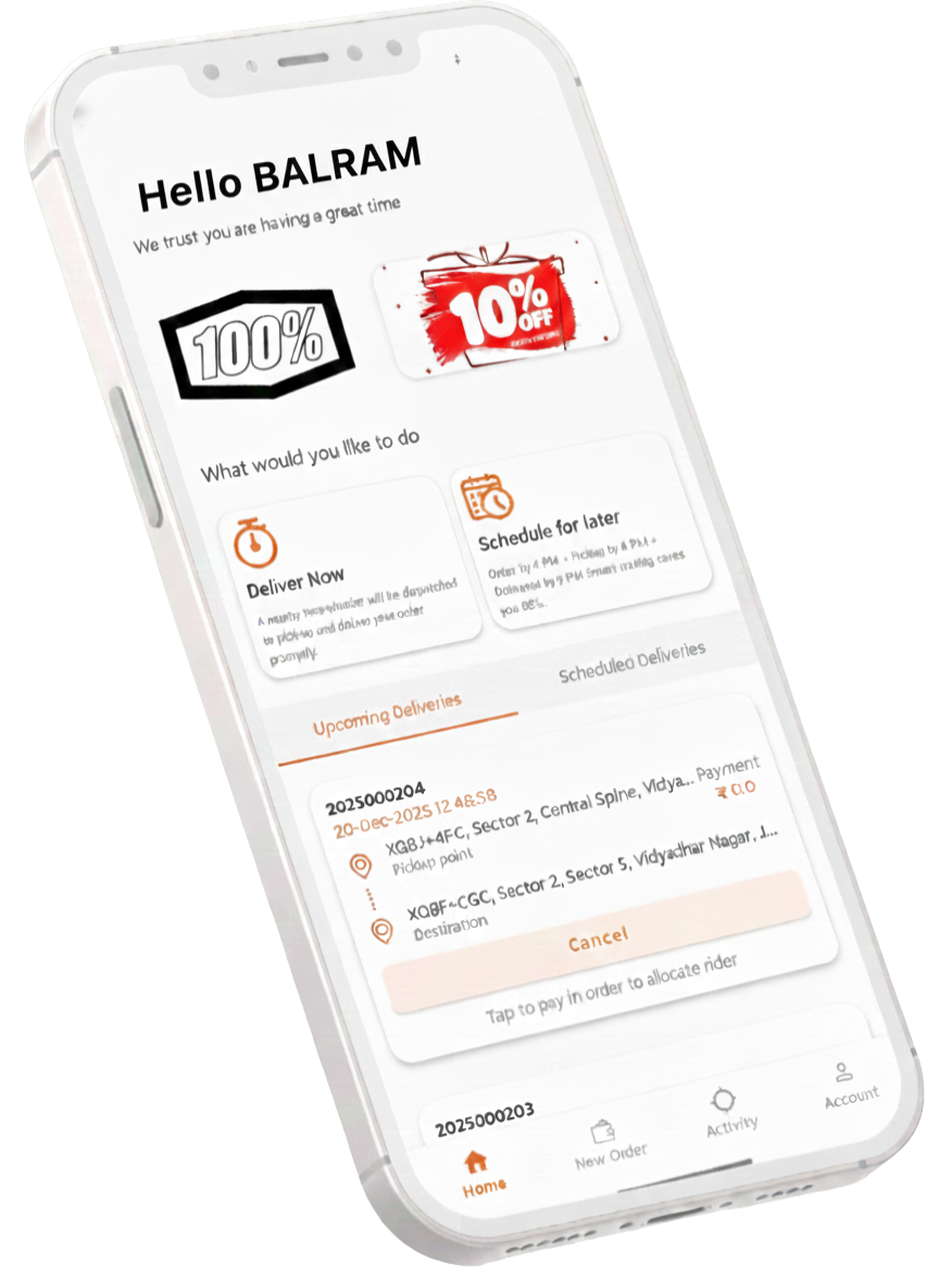 Our user-friendly app lets you book, track, and manage deliveries in just a few taps. Simple design, real-time updates, and complete control—right in your hand.